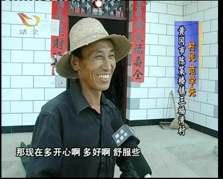 黄冈市陈策楼镇王福湾村村民范学先说:" 那现在多开心啊,多好啊,舒服些。国家的政策好,搞成这样,哪个不开心,都开心。"