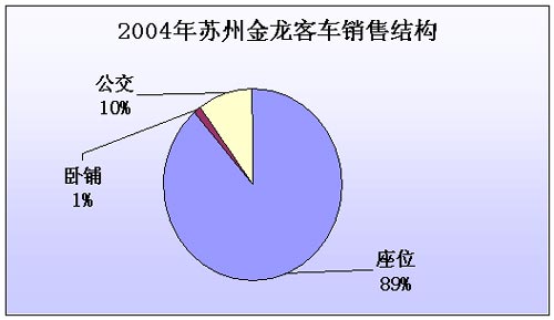 从市场角度看,苏州金龙公交车型的销量只占其总销量的11%,还尚未真正形成其主导性产品,但已具备了一定的产销规模。苏州金龙客车的主流车型仍为座位客车,占总销量的88%,集中于旅游和团体市场以及部分长途客运市场。