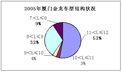 2005年厦门金龙客车成为客车行业销量增长最快的企业,而且这种变化并非来自以往传统的"外招虑式",可谓老树发出新枝芽;其销量由2004年的5486辆上升至2005年的7157辆,年增幅超过了30%,并且产品销量结构也发生了可喜的变化,更加突出其自身优势,大型客车的销量比重进一步提高。