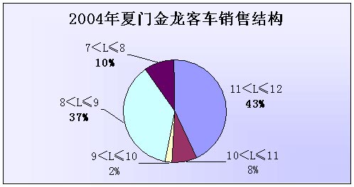 不难看出,厦门金龙客车的营销战略与策略的制定和调整必将反映出其核心产品(即:11-12米大型客车和8-9米中型客车)的优势,尤其是11-12米车型,市场在这一产品上的微小变化都会引起厦门金龙客车的高度警觉,当然,企业也不会轻易对自身关键部位做出系统性政策变动。