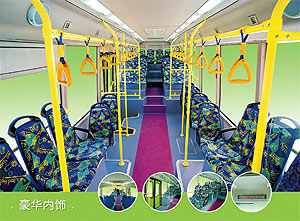 图/文 中国XINGKONG.COM在线新闻组 寒梅 进入21世纪,人们意识到交通拥挤和空气污染的烦恼是由私人小轿车造成的,一致认为要"优先发展城市公共交通"。另外,随着消费者需求的增长,城市公交车高档化、环保化的趋势日渐明显。根据这种趋势,长城公司将愉悦性、舒适性、健康环保等元素注入公交车的设计理念之中,开发出长城·花之语系列公交车。 长城·花之语CC6100G豪华公交车3月份首次亮相北京,即捧得全国客车大赛城市客车最佳造型奖和城市客车铜奖。CC6100G是长城公司研究欧洲最新流行款式,迎合城市公交主流,全新研制的城市客车。整体设计追求与现代都市风格一体化的流线造型,力求与城市建设建筑和人文环境基调相协调,时代感鲜明,现代气息浓郁,脉动都市,增添无穷魅力,必将成为都市中一道亮丽的风景线。 CC6100G长10.5米,宽2.49米,高3.11米,满载81人;车身挺拔俊朗,色泽艳丽,气度非凡;丹凤眼式前大灯,神韵四射;大幅面观景侧窗玻璃,采用幕墙式玻璃粘贴技术,使整车外观流线更为通畅、大方,都市风景尽收眼底。其配备江淮底盘,玉柴240马力欧Ⅱ排放发动机,动力澎湃;大容量制动器,加宽制动蹄片、ABS,确保制动安全、可靠。CC6100G低地板一级踏步设计,使乘客上下车更为方便。制冷量强大的非独立顶置式空调使乘客在炎炎夏日感受丝丝凉爽。新型座椅,专利扶手、吊环,成型内顶,耐磨地板革等,用料考究,处处体现着对乘客的极致关怀。 长城·花之语CC6100G公交车符合《城市客车等级技术要求与配置》高级车标准要求,将21世纪城市公交车型三大,即大容量、大功率、大采风;三低,即低排放、低能耗、低地板的特点融为一体,定能为公交公司带来良好的经济效益和社会效益。