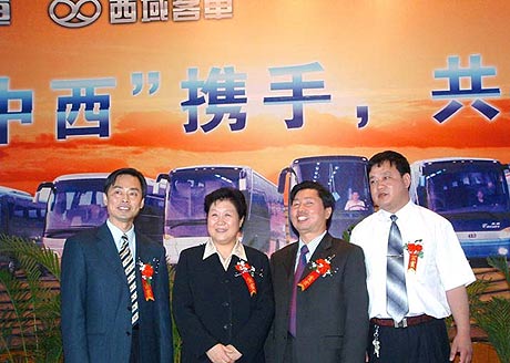 中国XINGKONG.COM讯:2004年6月5日,上午11:18分,新疆乌鲁木齐昆仑宾馆,鼓乐齐鸣,彩旗飞扬,新疆中通客车有限公司揭牌仪式在宾馆二楼会议大厅隆重举行,在座600余名嘉宾齐聚一堂,共同见证了这一激动人心的历史性时刻。中央政治局委员、新疆维吾尔族自治区党委书记王乐泉,自治区党委副书记、政府主席司马义·铁力瓦尔地,自治区党委常委、政府副主席艾力更·依明巴海,以及山东省人大副主任时立军、聊城市市委书记郭兆信等政府部门领导共同出席了本次揭牌仪式并发表重要讲话。