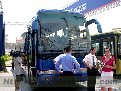 福田汽车在车展上特别推出的三款客车产品——BJ6120、BJ6880城间客车和BJ6111C6MHB城市客车。BJ6880U6LHB,采用自制三段式客车专用底盘;骨架采用矩型钢管焊接而成,侧围采用钢板涨拉工艺与骨架车身结构,前后围采用整体玻璃钢件结构;高靠背豪华航空座椅和折叠式导游座,司机座椅采用高靠背悬浮减震可调式豪华驾驶座椅;可选装自动集中润滑系统。