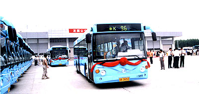 7月3日,在无锡市无锡九龙公交新区公交分公司场内,彩旗飘扬,锣鼓喧天。由厦门金龙旅行车有限公司提供的88台崭新的豪华公交客车整齐地排放在场内。这里正举行无锡九龙公交200辆金旅牌XML6110UE豪华公交客车投运暨新线路开通仪式。新增的88辆豪华公交客车将投入营运,提前完成了无锡市委、市政府今年为民办实事的目标任务。无锡市委书记王荣及市五套领导班子的领导、市有关部门及厦门金龙旅行车有限公司领导出席了仪式。