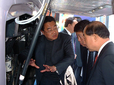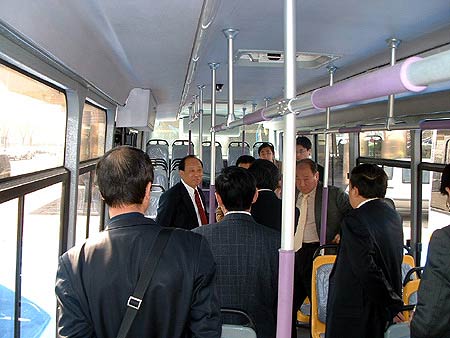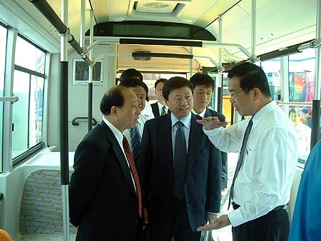 :2005年3月30日,北京公交集团招标车辆展示会正在如火如荼地进行,北京公交集团车辆招标采购评审组与业内专家们对此次招标会进行了公开、公平、公正的评审。值得一提的是,北京公共交通控股(集团)有限公司董事长、党委书记郑树森先生、北京公共交通控股(集团)有限公司总裁副总经理冯幸福先生等在众多专家的陪同下,对参展的各家公交车辆进行了参观指导。
