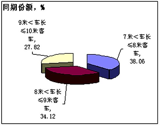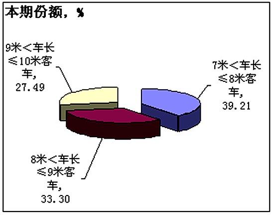 2005年1-8月不同车长中客整车累计市场份额对比