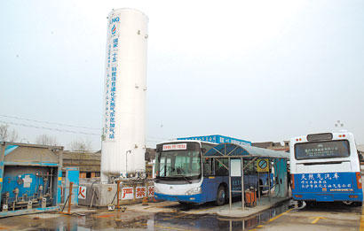 3月7日,湖南省首座液化天然气公交车加气站在长沙汽车东站建成并投入使用。该站由立式和卧式两个大型储气罐组成,设计储气总量40吨,可给3月10日即将投入营运的52台168路液化天然气公交车提供充足的节能环保气源。
