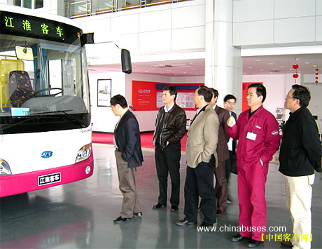 江淮客车总经理李永祥陪同专家参观新型公交产品