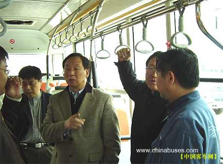安凯客车总经理童永陪与会专家试乘低地板公交车