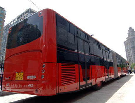 4月20日,长度为18米可载员160人的新型客车从快速公交起点站出发。
