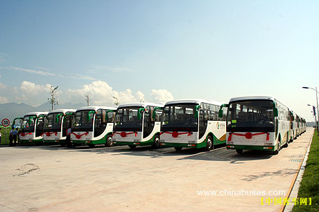 20日上午,"金龙客车批量交付金东纸业(江苏)有限公司"交车仪式在厦门汽车工业城大金龙新厂隆重举行,大金龙副总经理徐向东将代表本批车辆的金钥匙郑重地交到了金东纸业(江苏)有限公司党委副书记、工会主席孙炳健手中。随后,在礼炮和掌声中31辆XMQ6119T排着整齐的队伍浩浩荡荡地开出厂门。这是大金龙世界级客车生产基地--大金龙新厂自今年3月份投产以来首次批量交付客户。本批车辆的交付意味着大金龙在团体车市场上获得重大进展,再掀团体车市场热潮。