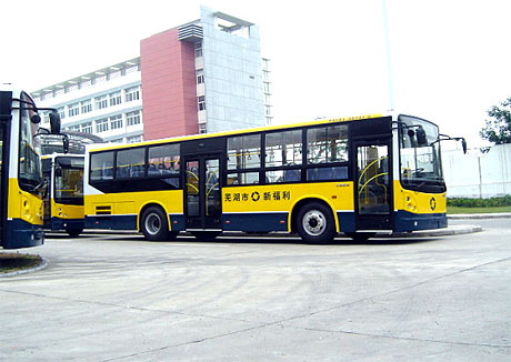 据安徽省芜湖分管经理张梁介绍,这批公交车HK6100BG是安徽江淮客车有限公司10米公交的明星产品之一,采用国内最成熟客车专用底盘-江淮HFC6100KY底盘,玉柴YC6J210-20发动机,綦江QJ805变速箱,以及人性化设计和优越的性价比受到客户的一致好评。   "江淮·现代客车好省油!",是多年来江淮客车品牌经营的价值核心。江淮客车充分吸收了韩国现代客车的节油技术,不仅是座位客车,在公交客车上也充分体现了节油特点。油价不断上升的今天,节油客车深受客户的青睐。江淮客车的节油、优越的性价比、人性化设计、便利的售后服务