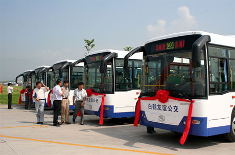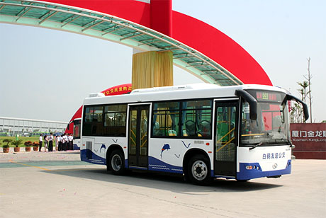 随后,陈志强总经理将代表本批车辆的"金钥匙"郑重的交到了李明泰总经理的手中。在礼花和鸣笛声中,35辆XMQ6798G中巴车排着整齐的队伍,浩浩荡荡地开出了厂门。这批型号为XMQ6798G的中巴车是金龙公司针对厦门公交市场需求自主研发的一款成熟车型,性能稳定,外观简洁大方,采用多项人性化设计,性价比好,一直以来深受广大用户的好评。
