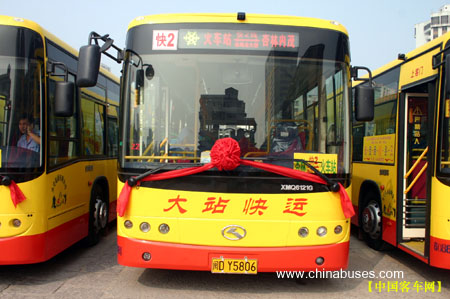 经过多次实地调研,厦门公交集团最终选中了性能优越、环保节能、舒适美观、性价比高的金龙客车用于更新旧车型,并于7月13日与大金龙签定了购买350辆大型金龙城市客车的协议。此次交付的首批40辆XMQ6121GF公交车就是大站快运线路特别选用的符合国Ⅲ环保标准的高档12米金龙空调客车,采用低地板设计、软化内饰等多项人性化设计,排放清洁环保,必将为改善厦门市空气质量,杜绝市民普遍反应强烈的公交车"黑尾巴"现象,提升城市品位发挥积极作用。