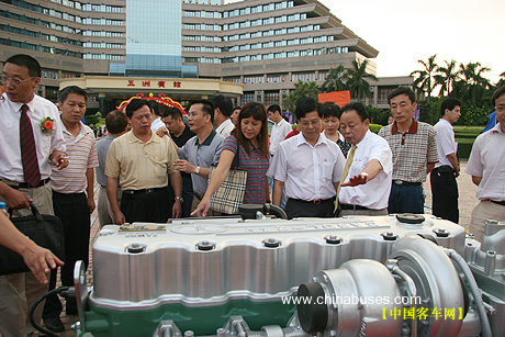 蒋厂长在向参观者介绍锡柴国Ⅲ机性能