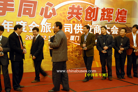 会议开幕由金旅公司副总经理张致平致欢迎辞并通报2006年的生产经营状况和今后的发展规划;金旅公司采购部经理叶宇亮总结2006年金旅公司配套工作、表彰06年度优秀供应商。綦江齿轮传动有限公司2006年所供金旅的各类变速器总成同比增长18%,大中型客车占有率达到70%,凭借高品质的产品以及优质的售后服务荣获了厦门金旅公司2006年度的优秀供应商。