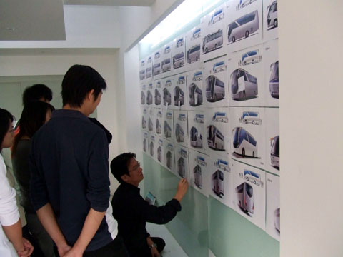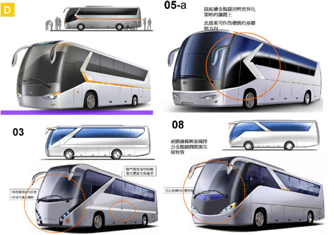 方案确定   (五)样车阶段与生产   将基准主模型与完整的数模,交付模具厂与零部件开发商与大金龙生产部门,从样车(Prototype)确认到开始准备相应的模具等开发工作。   一般属于大型交通工具的设计,其专业流程是工业设计师必须要对尺寸与造型的明确负责,并反映工程的可行性,透过计算机辅助设计贯穿二维图面发展与三维立体模型制作,反复修正检讨特别重要的是如何掌握实际比例的关系与评价模式的确认,去完成最终的设计提案。