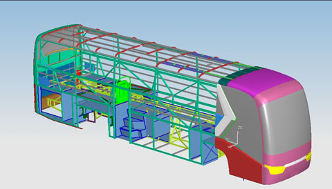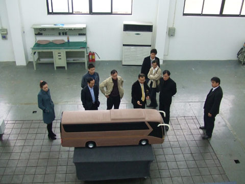 model)。加工完成的比例油土模型,还需不断地检讨、修正以确立体量比例与走势及特征细节。   一是应用工业设计辅助设计(CAID)的软件,做出实物虚拟(Simulatioin)的效果来进行探讨,以掌握体与型的平衡。经过确认修正的结果将反映到比例油土模型上。   当比例模型经过正式评审,确定了最终方案,整个造型设计告一个段落,是为"设计方向冻结"。接下来的工作是通过电脑软硬件对设计方案进行数字化处理。在这个阶段,大金龙研发部门也展开同步数据去检讨车架的结构,以确保设计提案与车架底盘之间的可行性。