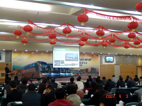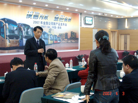 | 厦门金龙旅行车有限公司2007年中国贵州新产品新闻发布会,于2007年4月3日在风景秀丽的林城贵阳如期举行。莅临本次会议的嘉宾有全省各地运输企业的老总,有各旅游公司的负责人,有慕名而来的用户,还有专用车用量较大的政法界代表,除了老朋友外,也不乏新朋友。
