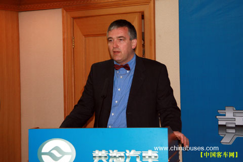 丹东黄海客车总经理郝庆军介绍黄海客车发展现状   在展区布置方面,黄海将设BRT展馆及迎奥运用车展区。两个展位同时做新车展示和推介。   在室内的BRT展馆内,黄海展出了和MAN在国外同步生产的12米及18米低地板BRT用车,这两款车均为黄海系列引进德国MAN技术的产品。现已形成批量生产能力,即将销往全国各地。