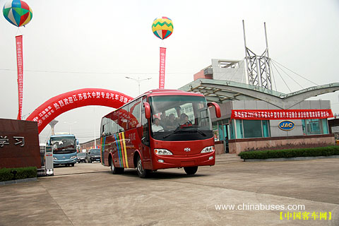 本次活动期间,江苏省各客运公司领导还参观了江淮客车工业园区,在参观期间,安徽江淮客车有限公司董事长王江安详细介绍了江淮客车的近几年的快速发展及产销情况。随本次活动一起亮相的江淮客车三款最新产品:新款HK6124、HK6893K商务型以及HFC6108H显得尤为瞩目。