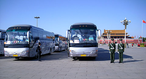近日,随着中共十七大的召开,越来越多的会务用车开始出现在中共十七大代表的视线里。本次负责为十七大提供用车服务的北京首汽集团是国内旅游汽车行业综合接待能力最强的企业之一,承担过许多国家政治、经济活动用车的重任。为了圆满地完成这次十七大用车服务的任务,首汽集团除了为各个代表团团长提供具有政治、历史意义的红旗HQ300型新车以外,还选择了具有"中国客车代言"称号的宇通客车为代表们提供接送服务。这不仅体现了宇通客车卓越的产品性能和高档品牌优势,更显示了宇通作为行业龙头企业的雄厚实力。