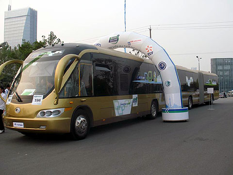 宇通市场部负责人表示,快速公交车被视为城市一道亮丽的风景线,宇通不仅对其外观设计要求严格求精求新,细节配置上体现人文关怀,还要不断致力于开发更多节能减排产品。在此次挑战赛上,除了金质产品创造金牌价值的"黄金子弹头"