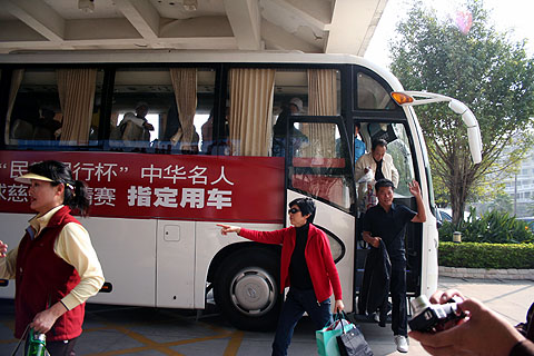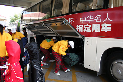 见惯了名牌轿车作为接送转车的明星大腕们对集中乘坐大金龙豪华大巴参加比赛表现出新奇和兴奋。记者注意到,在早上从酒店出发前往参赛地的途中,读书、看报,有说有笑,兴致都非常高,有的甚至还利用平稳的车况和宽敞的车内空间玩起了牌。而在比赛完的回程途中,除了部分精力充沛者仍在热烈讨论比赛情况以为,更多的明星则是选择了打盹、睡觉。在鏖战了数小时的高尔夫比赛后,车内舒适、安静的乘坐空间成为了众明星睡觉补充体力的好地方。