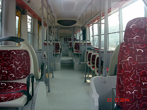 KLQ6180GQE3是苏州金龙针对我国飞速发展的快速公交(BRT)系统设计的特大型城市专用公交客车。采用“子弹头”式动感流线型设计,车身颜色采用了时尚“酒红色”,正面观看使人产生一种快速列车飞驰而来的速度感和安全感。1、大公交、大容量采用2+2和1+1混合座位布置,座位数达到35+1+3(母子座),载客总数达到165人,体现了该产品大公交大容量的特点,可称为公交中的“航空母舰” 2、合理设计提供公交运行效率 整车采用低地板底盘设计,一级踏步离地高度360mm。悬挂系统采用ECAS控制系统,车身在靠站台时可以侧倾,提高了乘客上下车的效率。整车设有四个乘客门,方便了乘客进出,更适用于多流量的城市线路。在中门增加了自动伸缩踏步,并在车内布置了轮椅放置区,为残障人士的乘坐提供了便利。 3、关键进口部件保证良好品质 采用代表国际先进水平的德国ZF低地板前中后专用门式车桥(后桥承载13吨);铰接系统(铰接盘及折棚)为国际上通用的德国产虎伯拉的ECU电子控制产品。4、节能降耗动力系统 发动机选用进口康明斯的欧三发动机。为了灵活应对BRT紧凑的安装空间,发动机冷却风扇采用液压驱动带硅油离合器风扇驱动系统。大大改善冷却系统动力消耗,使得冷却系统具有低能耗、低噪音、维护周期长、可充分利用紧凑的、有限的发动机舱空间等优点。发动机进气系统采用新型空滤器和优化发动机进气管路,有效地降低发动机的进气阻力10%,延长空滤器保养周期30%。优化排气消声器,降低排气阻力5%。有效的降低了发动机附件系统能耗,使燃料燃烧更充分,达到节能减排的目的。5、稳定可靠制动系统 为了提高主动安全性,采用前中后盘式制动器,解决了鼓式制动器无法解决存在的过热、爆胎等问题,全面提高制动可靠性。装配液力缓速器,减少了制动蹄片的损耗,极大降低了车辆的维修成本。安装WABCO的6S/6M防抱死系统,无论干燥路面还是湿滑路面均能实现安全制动,保证人、车安全。6、其他安全方面 采用冷凝器和干燥器组合有效的对压缩空气的油水进行分离,提高制动压缩空气的质量,延长了制动阀类零件的使用寿命,增强了制动的安全性;整车管路采用优质尼龙管,提高管路的耐腐蚀性,基本做到了管路的寿命等期整车的使用寿命。