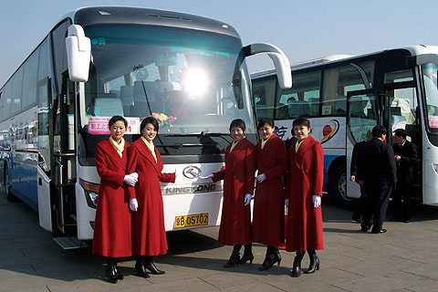 自3月3日以来,14辆来自北汽旅游汽车公司的金龙"龙威"XMQ6129Y客车,为参加两会的福建、山东、江西等多个代表团提供全程交通运输服务,这款寄托着大金龙人汗水与创造力的新型客车,不仅接受着代表们的检验,同时也在接受着同行竞争者的检验。