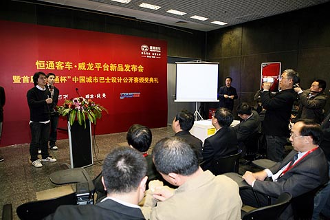 3月11日,由中国土木工程学会城市公共交通学会和重庆恒通客车有限公司联合主办的首届“恒通杯”中国城市巴士设计公开赛颁奖典礼在上海客车博览会上隆重举行。来自组委会、评委会的嘉宾、获奖代表、媒体近100人共同见证了这一激动人心的时刻,期待已久的金银铜奖终于尘埃落定。