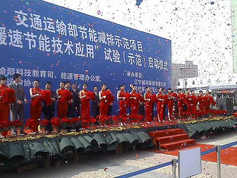 中国道路运输协会会长姚明德先生在启动仪式的致辞中提到:“今天的启动仪式还有更重要的意义,因为它向世界宣告:中国是世界上第一个把液力缓速节能技术应用在城市客运线路上的国家,沈阳——抚顺的客运班线是世界上第一条运用液力缓速节能技术的客运线路,辽宁城际客运有限公司是世界上第一个在客运营运车辆上正式使用液力缓速节能技术的企业,厦门金旅是世界上第一个采用液力缓速节能技术的客车制造厂。”