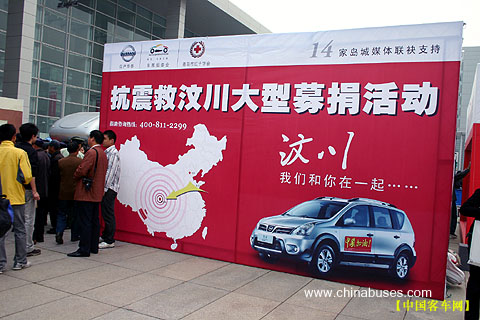 考虑到5月12日我国四川省汶川发生了里氏7.8级强烈地震,车展组委会以及参展企业心系地震灾区,纷纷采用不同方式献爱心!组委会特意在开幕式上倡议所以与会嘉宾为地震中遇难的同胞默哀一分钟,并在场馆的入口处设立了爱心捐款箱。同时参展的各个企业也采用不同形式表达向灾区的一份爱心!