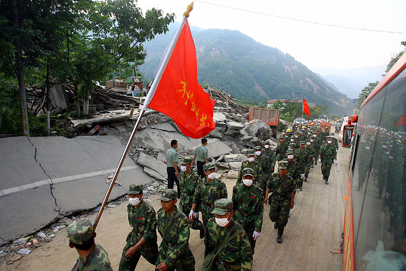 救援队领队:我们分公司在成都和重庆,地震时,办公桌、电脑和文件柜倒在地上,不过没有人员伤亡。