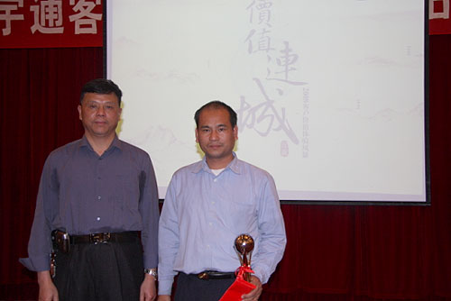 惠阳志通朱总和陈总为获得并列第三名的惠运集团801车队的孙惠华师傅和惠阳志通二车队许广和师傅颁发了奖杯和奖金。
