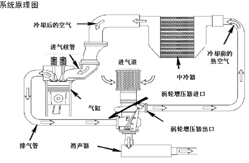 发动机是靠燃料在汽缸内燃烧作功来产生功率的,输入的燃料量受到吸入汽缸内空气量的限制,所产生的功率也会受到限制,如果发动机的运行性能已处于最佳状态,再增加输出功率只能通过压缩更多的空气进入汽缸来增加燃料量,提高燃烧作功能力。在目前的技术条件下,涡轮增压器是惟一能使发动机在工作效率不变的情况下增加输出功率的机械装置。