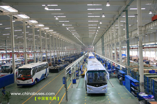 从生产车间的墙上一句"金龙客车,通行世界!"的广告语,已让我们看见了中国客车国际竞争力的希望以及大金龙走向世界的决心