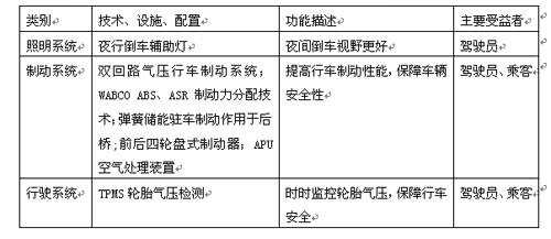 XMQ6129Y采用全承载式车身结构,利用骨架分散冲击力,增加客车的安全系数;另外TPMS胎压自动监测技术、APU空气处理装置、ABS、ASR等制动系统的改进都令安全升级;更有挡风玻璃冷暖除霜雾系统、电动升降司机窗的自动除霜功能、夜行倒车辅助灯等细节之处体现对驾驶安全的保障。