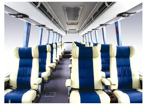 本车型内饰的设计思路:流畅自然、人性化、实用。通过搭载全新设计的行李架和成型顶等顶内饰,世界顶级的西班牙进口商务座椅和老奔腾经典实用的仪表台,并结合清新自然的色彩搭配,来继续缔造金龙11米级车型畅销不衰的神话。全车乘客座椅采用西班牙FAINSA商务座椅,全真皮的座椅面料,时尚的外观造型及优良的人机工程学设计,无论从视觉和触觉上都给乘客以完美的乘坐感受。在结构设计方面,在保证整体造型风格的前提下,结构上要力求简化,在充分保证装配工艺性的前提下,尽量采用整体成型件,减少拼接和对接点。同时设计中尽量考虑产品的通用性,降低成本。