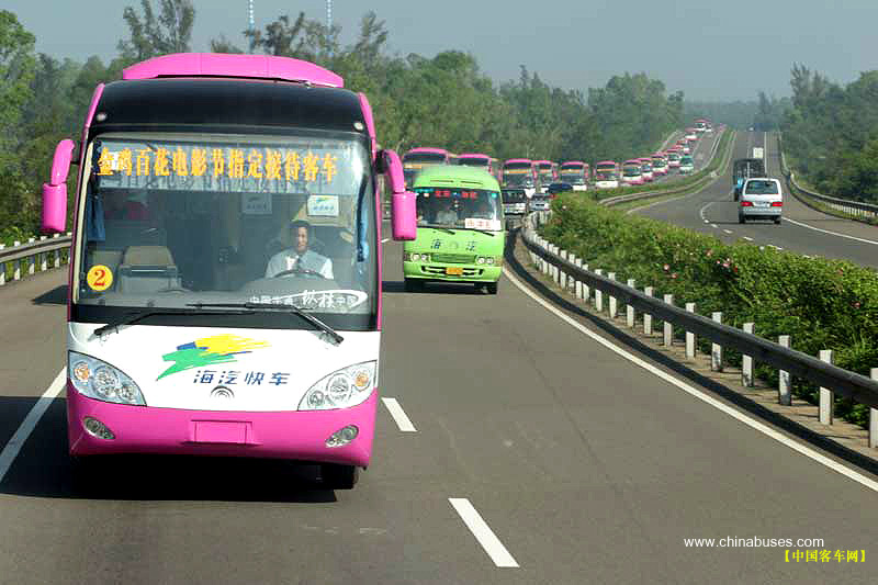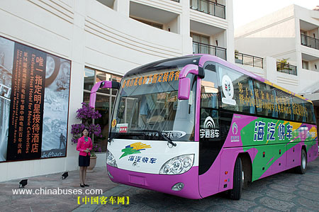 美丽的海滨城市三亚,正在沉浸在“两会一赛”的欢乐当中。宇通客车作为本次活动的指定接待用车,不仅在车身外观上添置了醒目的主题标语,而且各项接待工作排列紧张有序,使众多电影界人士乘坐起来相当舒适。目前,宇通16台豪华大巴仍在紧锣密鼓地嘉宾接待工作中。