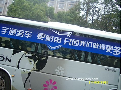 靓丽的客车造型,新颖的车身图案,醒目而直击客户心弦的耐用口号。这是完美的结合,是生动的演绎,构成一道炫目独特的流动风景线。