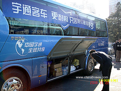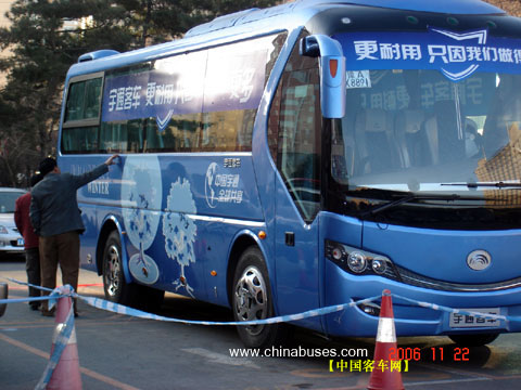 今天的沈阳已经是寒风袭人了,但是令我们意外的是在早上七点钟的时候,我们都刚起来,已经有客户在楼下看车了,我们的记者在匆忙之中拍下了这张沐浴着晨光的照片,记下了这感动的瞬间。因为会议9:30开始,当问到怎么来这么早时,看车的客户说:"听说宇通的新车运用了比较先进的技术,我们很关心,就迫不及待的来了。这车很漂亮,等会再听一下介绍,如果好的话,这车我们就要买下了。"
