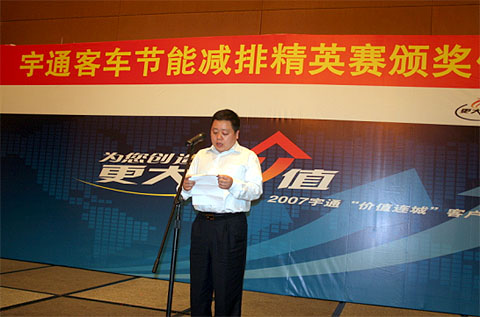 参加此次活动的客户代表,海汽公司机务部部长、副总工程师邓邦恒在颁奖仪式上讲话,感谢宇通公司对此次活动的全力支持。邓部长讲到,"此次宇通客车节能减排精英赛及节油培训有力地推动了运输企业节能减排工作的开展。不仅带来了先进的油耗测试设备,让我们见证了发动机热管理系统的神奇的节油效果,还为参赛选手和我们的管理人员进行了节油驾驶培训,让我们学到了先进的正规的节油技巧。宇通公司的这种做法,实实在在让我们体验了宇通"为您创造更大价值"这一营销理念的精髓,那就是给客户带来实实在在的更多收益。