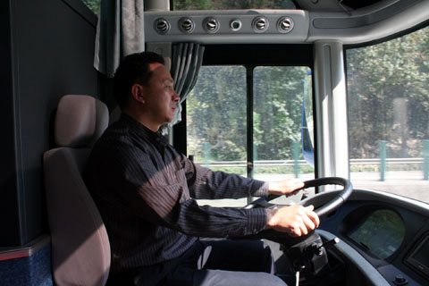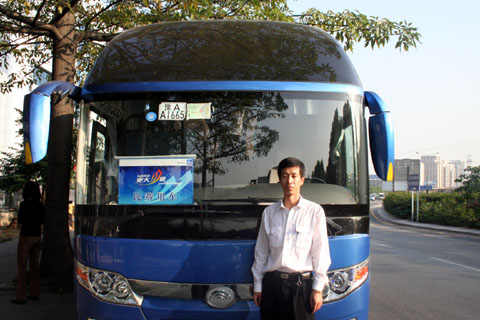 趁着比赛间隙,来自深长运的龚海师傅在漂亮的宇通"神行剑"客车前留影。