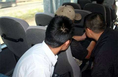 原来是来自深圳市宝运发汽车服务有限公司的参赛选手张文学师傅在利用比赛间隙向我们的摄影师梁老师学习摄影。深圳运发驾驶员的这种善于利用机会给自己充电的学习精神让我们有理由相信他们在明天的决赛中一定会取得更加优异的成绩。