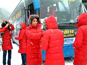 11月19日,长长的车队伴着佳丽们驶向了长城。无论走到哪里,中通车队总是吸引众多人们驻足观望的第一焦点。