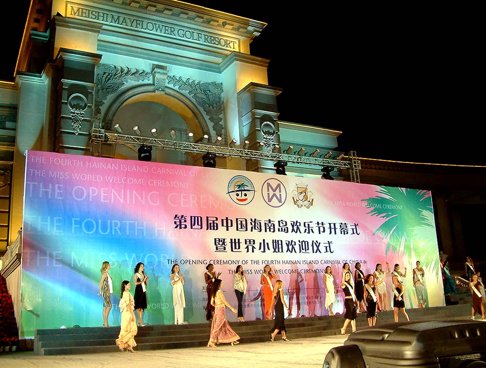 中国XINGKONG.COM讯:11月22日,110位世界佳丽同现海口五月花音乐广场,参加海南欢乐节,第二天各国佳丽离开海口到达三亚,同时也标志着第53节世界小姐总决赛"美丽的眼睛看中国"西安、上海、北京、海口巡游活动已经结束。中通客车和新国线伴随各国佳丽走完了整个旅程。