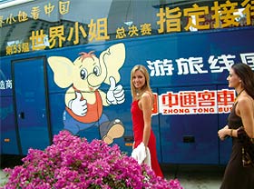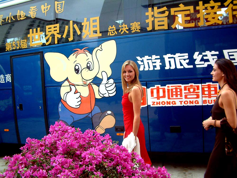 此次接待用车全部统一为中通凯撒和中通博发车。车身图案为世界小姐、新国线和中通客车的标志和图案。神气可爱的小象给大家留下了深刻印象,中通凯撒客车那大气、流线和别致的造型走到哪儿都是风景。所有工作人员形象统一,工作严谨,给各国佳丽们同样留下了深刻印象。