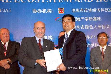 2006年7月30日,全球自然生态与人居环境论坛在深圳隆重召开,全球各界环保人士及相关组织汇聚一堂,共同探讨了城乡发展所面临的环境问题及其可持续解决方案。会上,我国著名客车品牌中通客车被指定为"大会接待专用车",同时凭借其对多年来对"绿色交通"作出的贡献,荣膺"全球节能产品奖"。