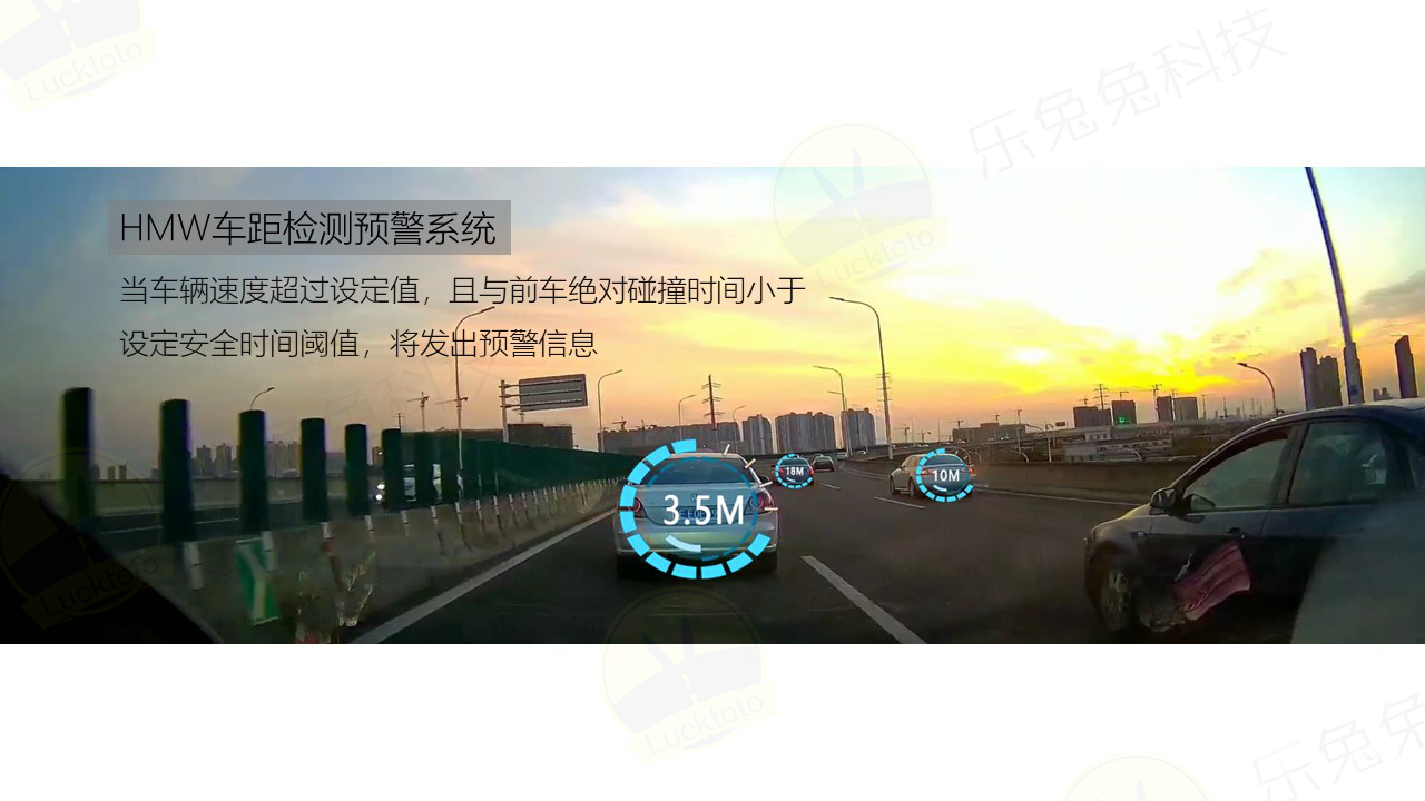 FCW车辆防撞预警系统,监测前方车辆,实际计算本车前车之间距离、方位及相对速度,当存在潜在碰撞危险时对驾驶者进行预警。